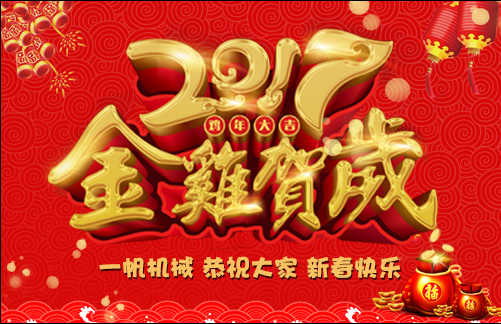 一帆機(jī)械將在春節(jié)期間放假,時(shí)間:2017年1月24日——2月3日。期間有任何問題可在線留言,我們將在假期結(jié)束的第一時(shí)間與您聯(lián)系。謝謝!