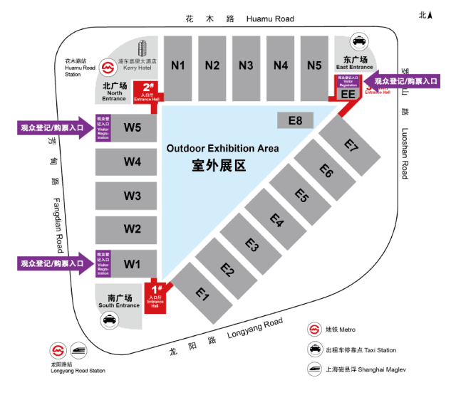 地鐵2號(hào)線:至龍陽(yáng)路站下車(chē),4號(hào)出口可步行至新國(guó)際博覽中心1號(hào)南入口大廳及W1觀眾登記入口。