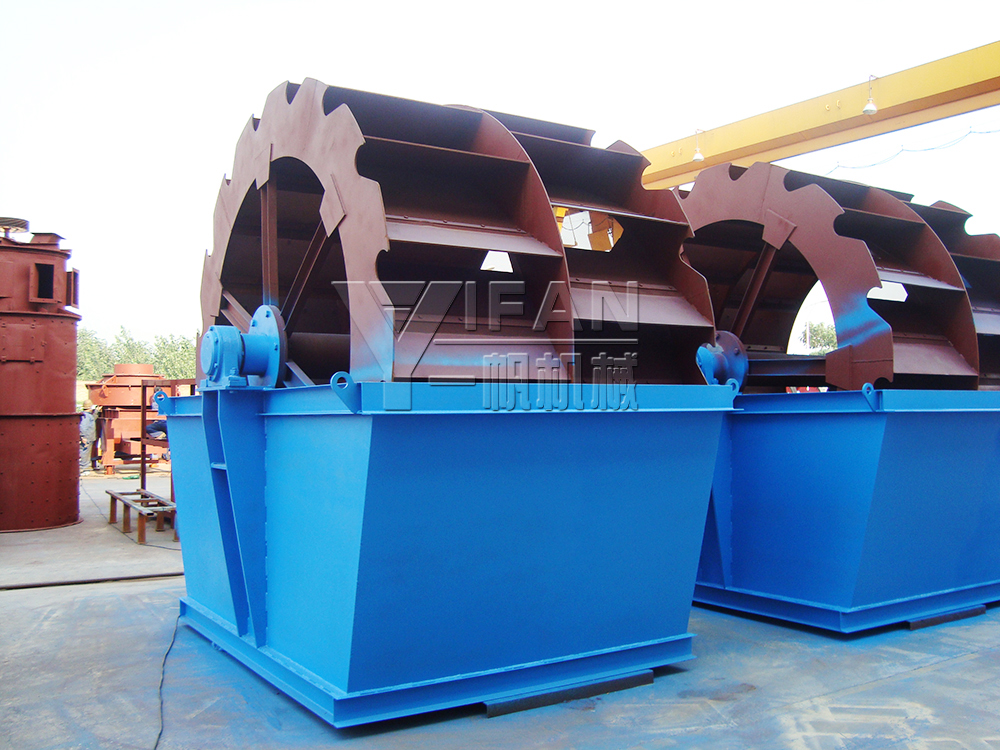 1、輪斗式洗砂機(jī):適用于清洗粒徑在5mm以下的細(xì)粒度物料,具有處理量大、結(jié)構(gòu)簡單等特點(diǎn)。