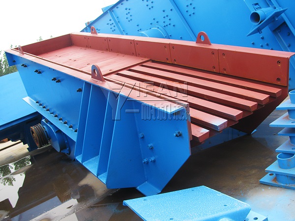 3、在砂石生產(chǎn)線(xiàn)中為破碎機(jī)械連續(xù)均勻地喂料避免破碎機(jī)受料口的堵塞;
