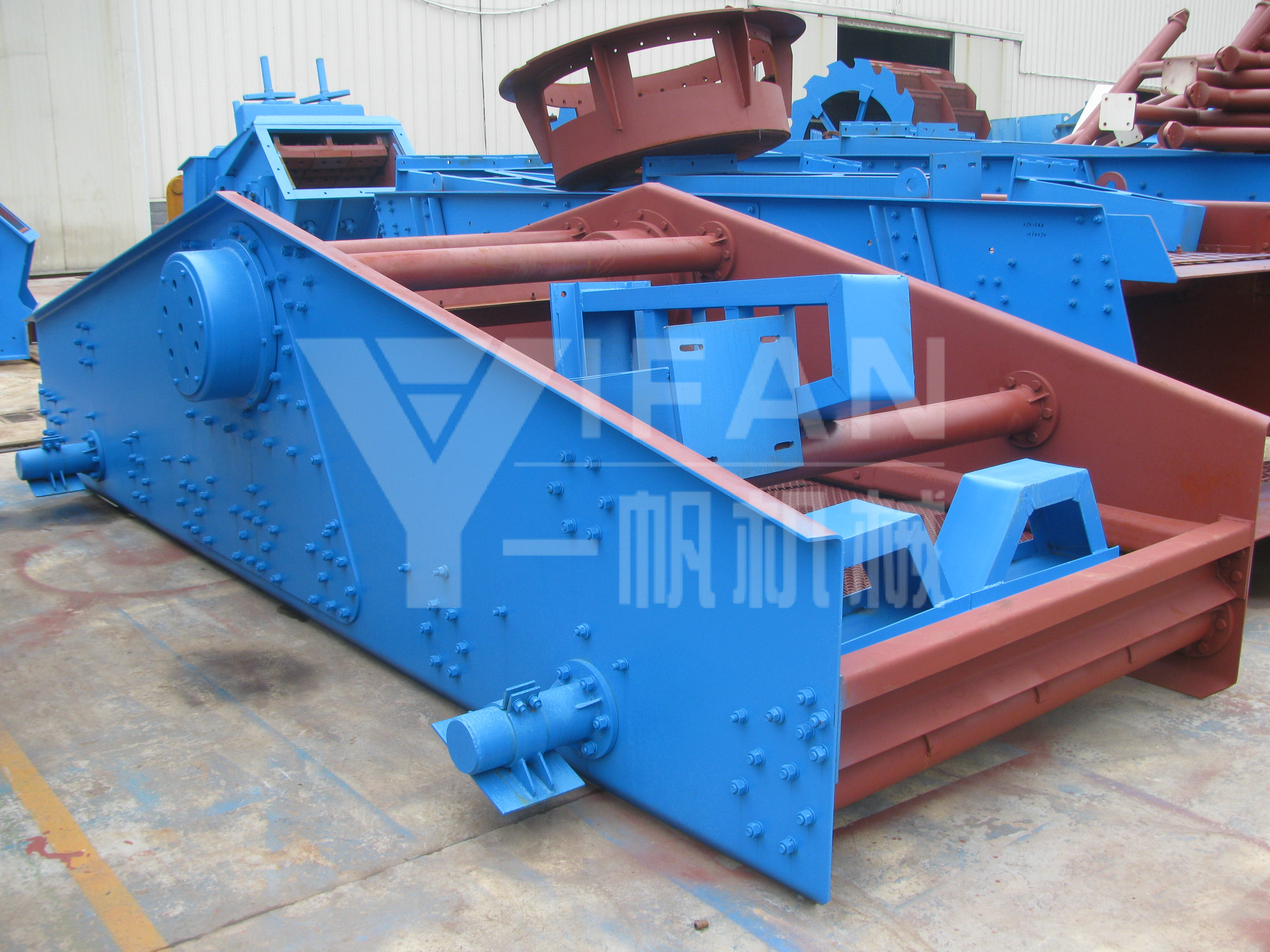 振動篩:振動篩也叫做篩分機(jī),可以將各種石料進(jìn)行篩分,分離出不同的粒度大小的砂石骨料,還可按照用戶的需求設(shè)置三到四層篩網(wǎng),與制砂機(jī)形成閉路循環(huán)作業(yè),且除篩網(wǎng)外,不易損壞。使用簡單,維護(hù)方便。