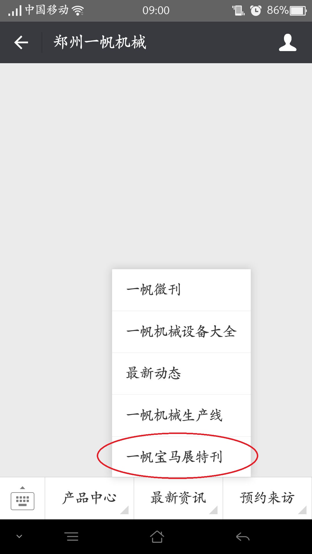點擊一帆機械微信公眾號下方"最新資訊",選擇“一帆寶馬展特刊”